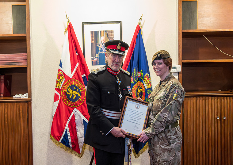 On 19th February the Lord-Lieutenant presented nine Lord-Lieutenant’s Meritorious Awards to nine very worthy recipients from both the Reserve units and Cadet units of all three services. These volunteers have gone beyond the call of duty around the county.